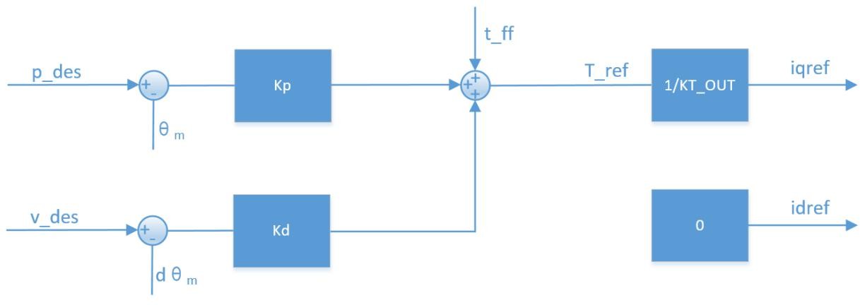 MITモデルから様々な制御モードを導出できます。 例えばKp=0、Kd≠0の場合、v_desを指定すれば等速回転を実現できます。 Kp=0、Kd=0の場合、t_ffを指定すれば所定のトルク出力を実現できます。