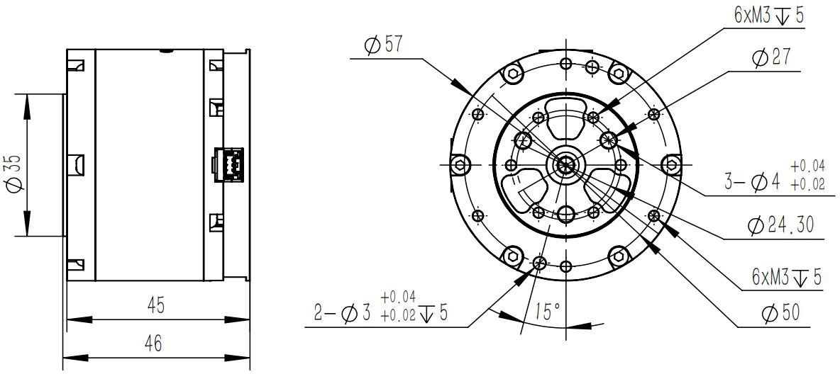 モーター取付穴のサイズと位置を参照し、対応する装置にモーターを取り付けてください。