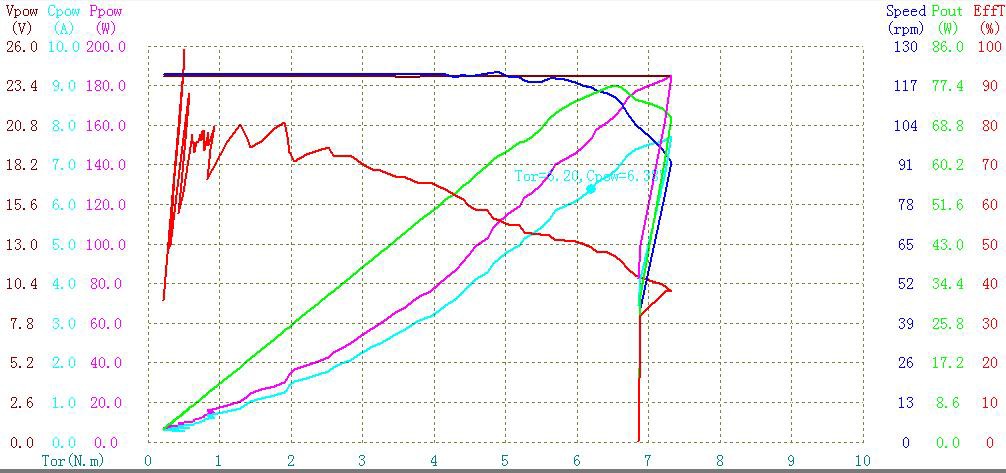 定速 120rpm、室温 25℃における測定性能曲線図: