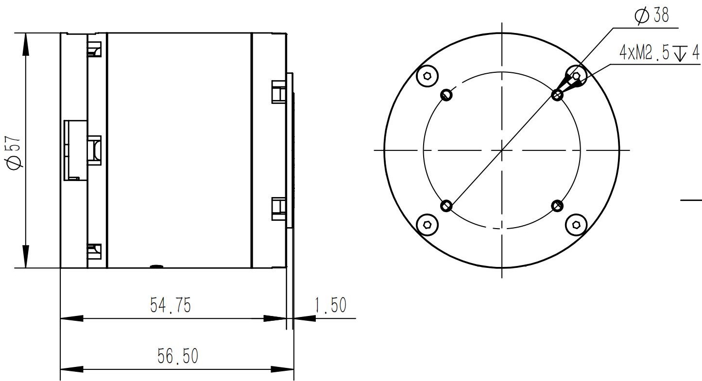 モーター取付穴のサイズと位置を参照し、対応する装置にモーターを取り付けてください。