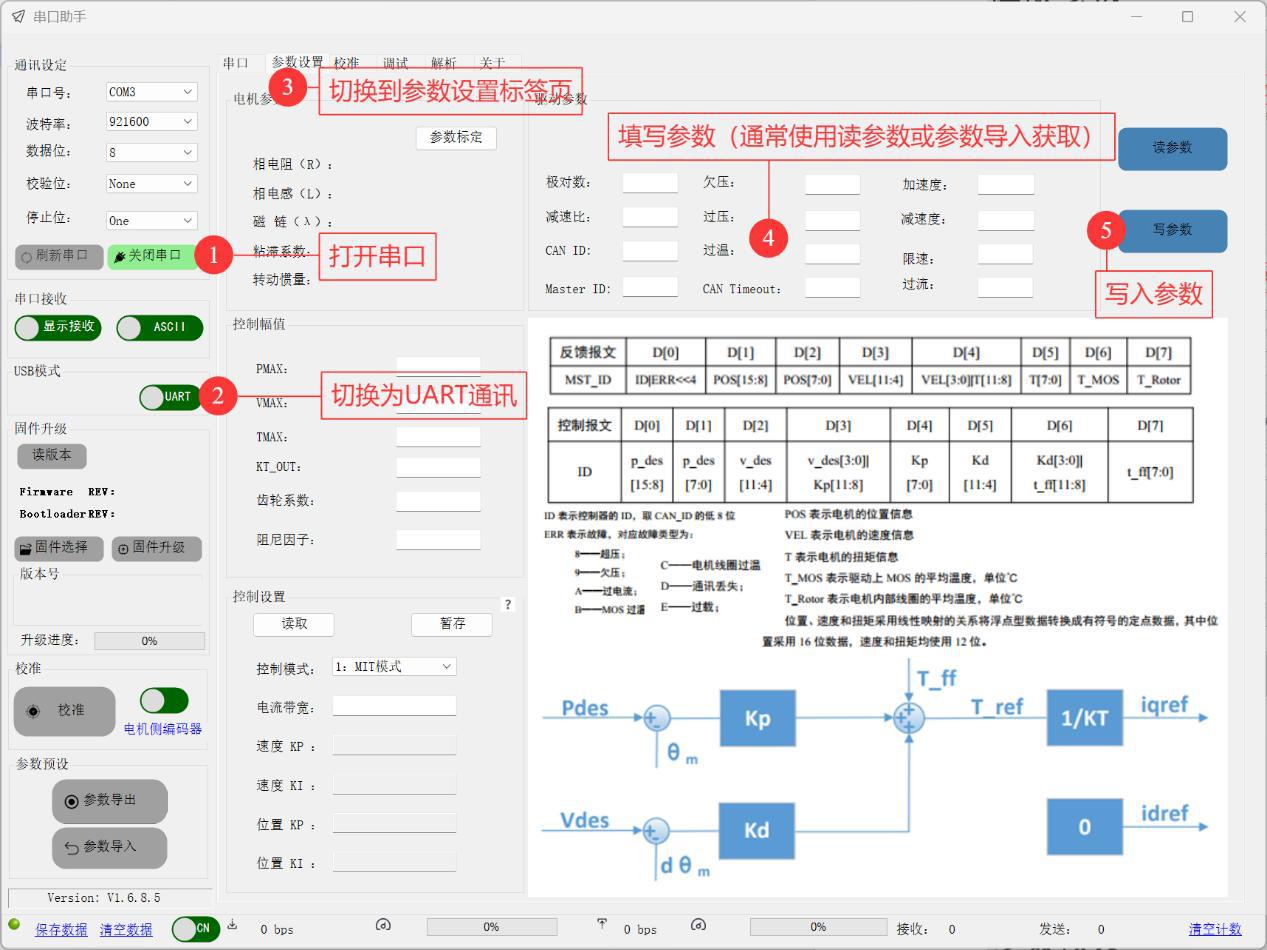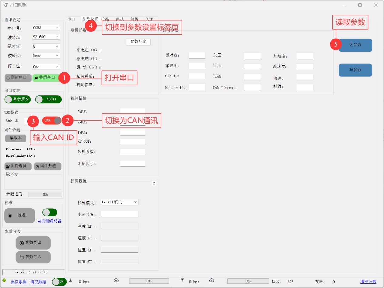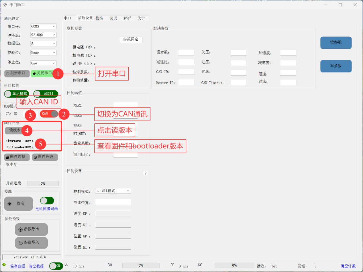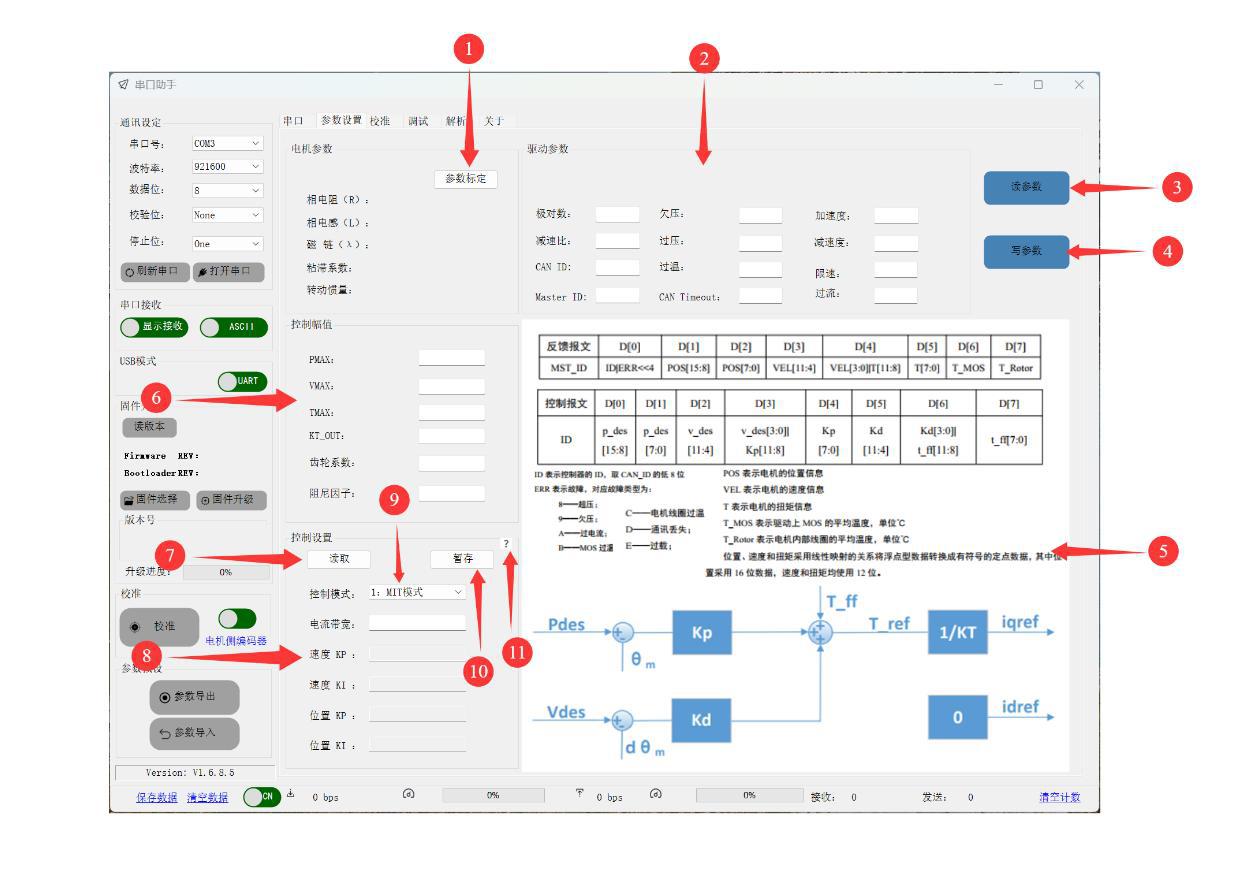 この通信モードでは、バージョン読み取り、ファームウェア更新、パラメーターの読み書き、パラメーターのインポート/エクスポート、およびモーターのデバッグが可能です。 現在、DAMIAO USB-CAN デバッガーでの操作のみをサポートしています。