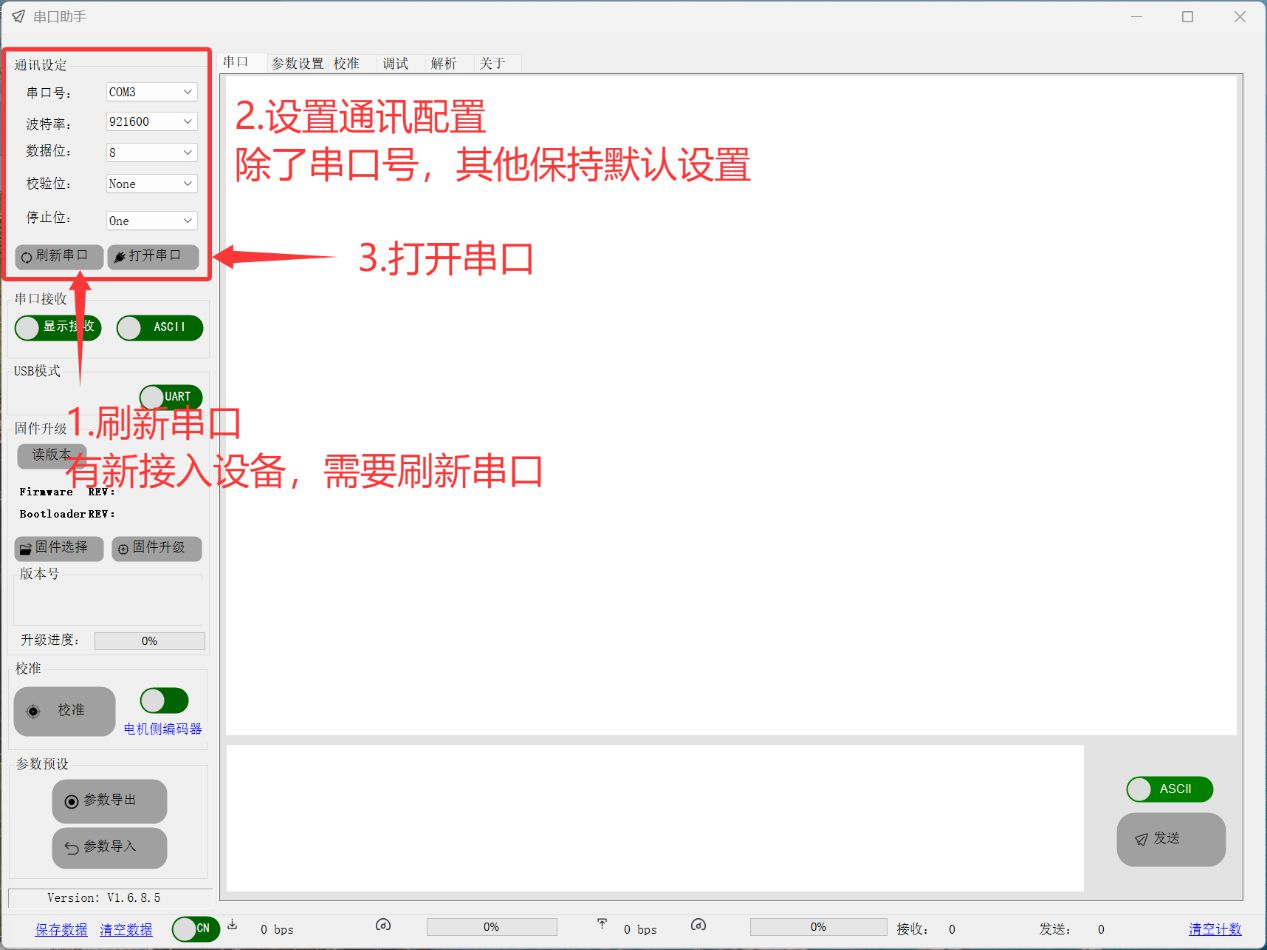 1. 打开串口(シリアルポートを開く)(手順①)