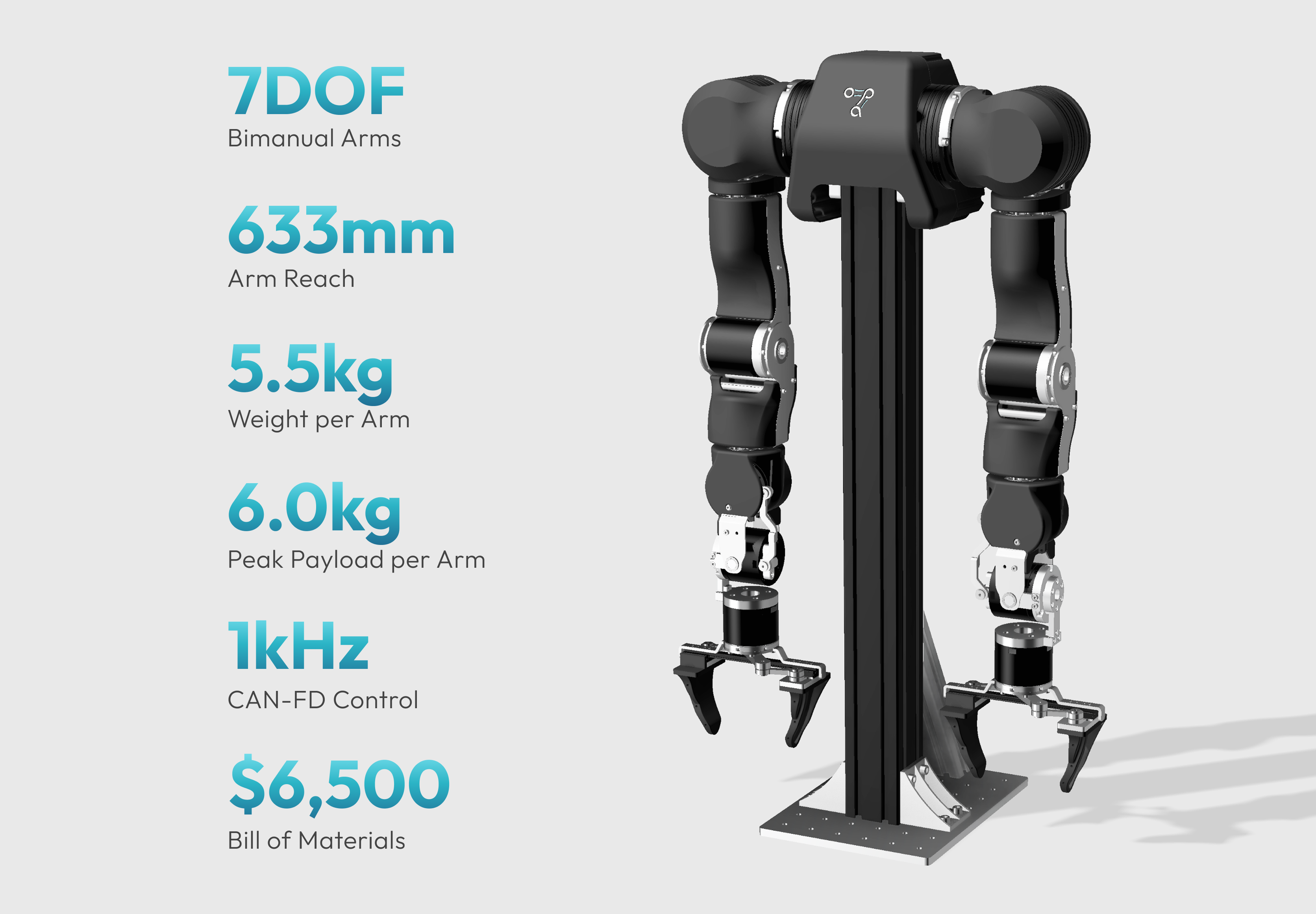 • Practical & Affordable At 6,500 USD for a complete bimanual system, OpenArm delivers research-grade capabilities at a fraction of traditional humanoid robot costs, making advanced robotics accessible to more teams and applications.