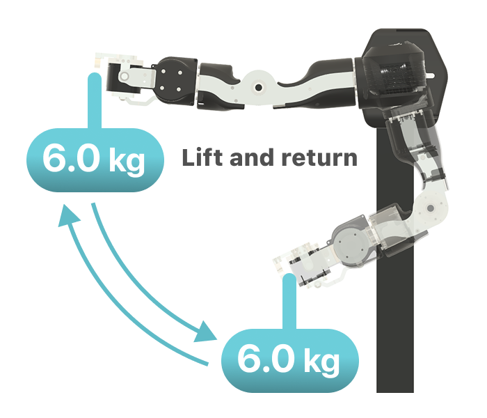 Nominal payload means the weight that could be held for one minute in the worst posture (arms extended to maximum).