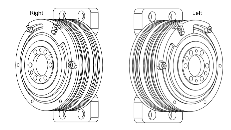 For the left arm assembly, part J1_B must be oriented slightly differently. Please refer to the image for the correct orientation. All other steps remain unchanged. Ensure that the Power+CAN ports on the J1 motor face forward, with the mechanical stop positioned toward the ports and at the top.
