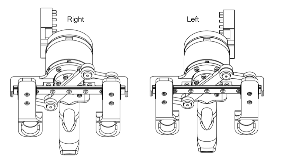 The alignment ensures proper mechanical coupling and correct orientation of the jaws during operation, as indicated by the arrows in the image.